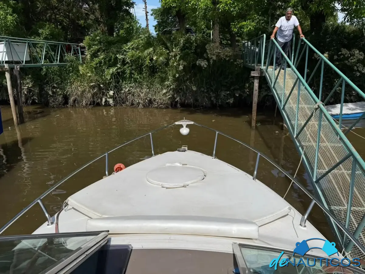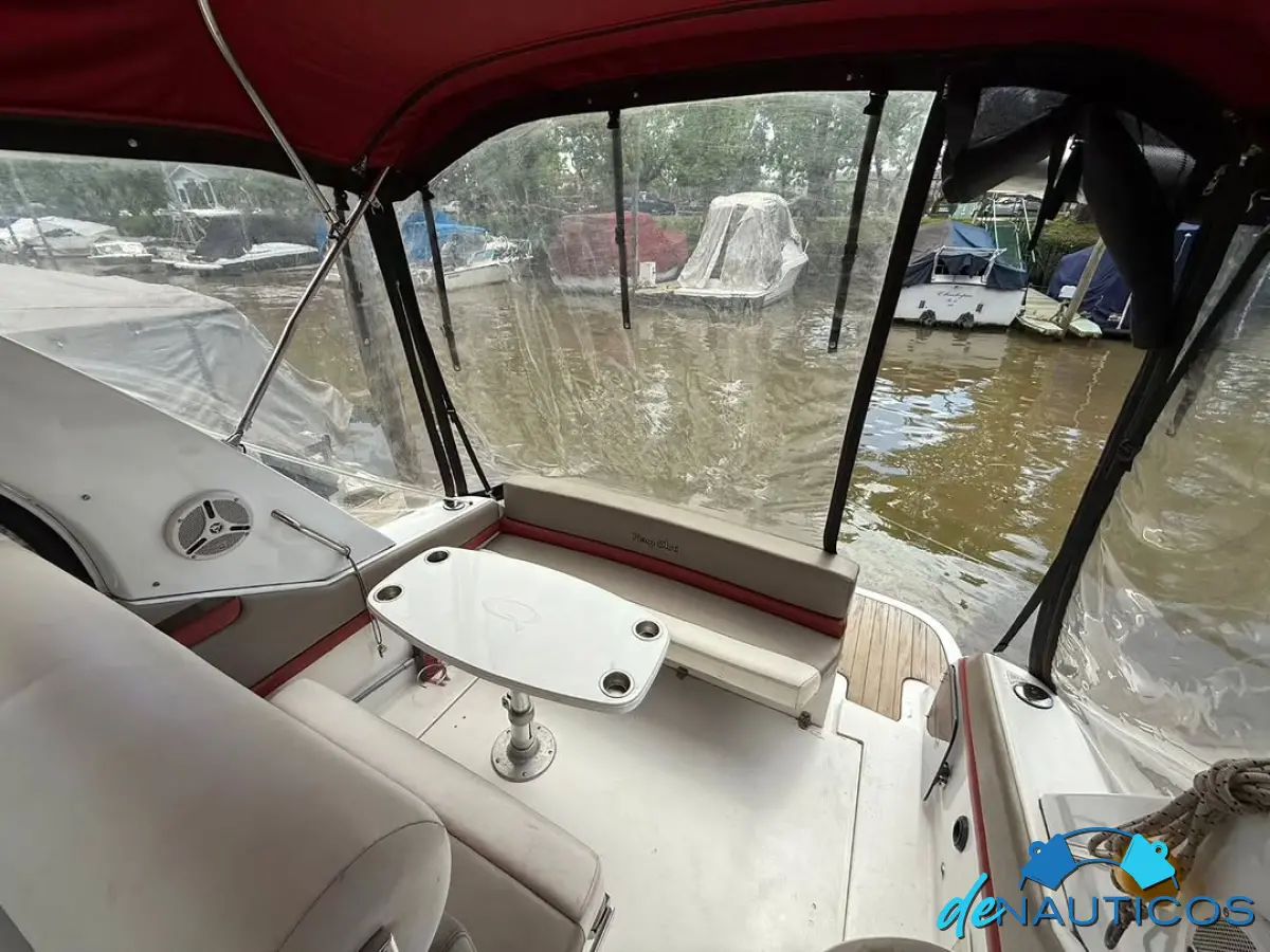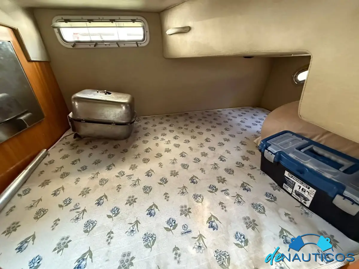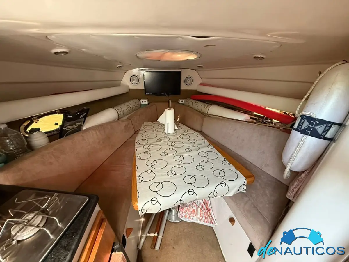 Dinette en proa convertible en cama - Baño y cocina enfrentados - Cucheta conejera doble bajo el piso del cockpit - Timonera con asiento doble - Cockpit con 2 asientos enfrentados con mesa, convertibles en solarium de popa.