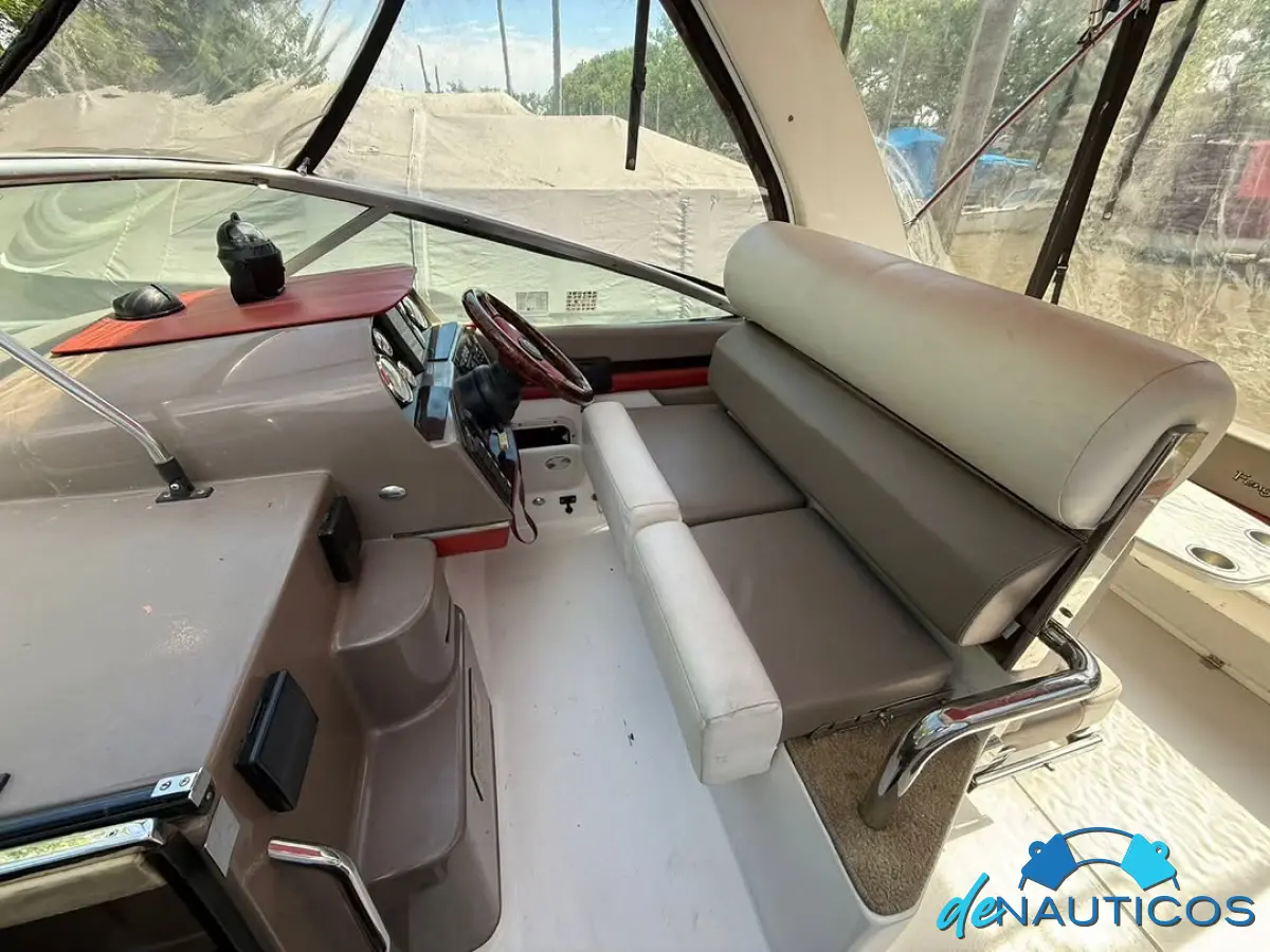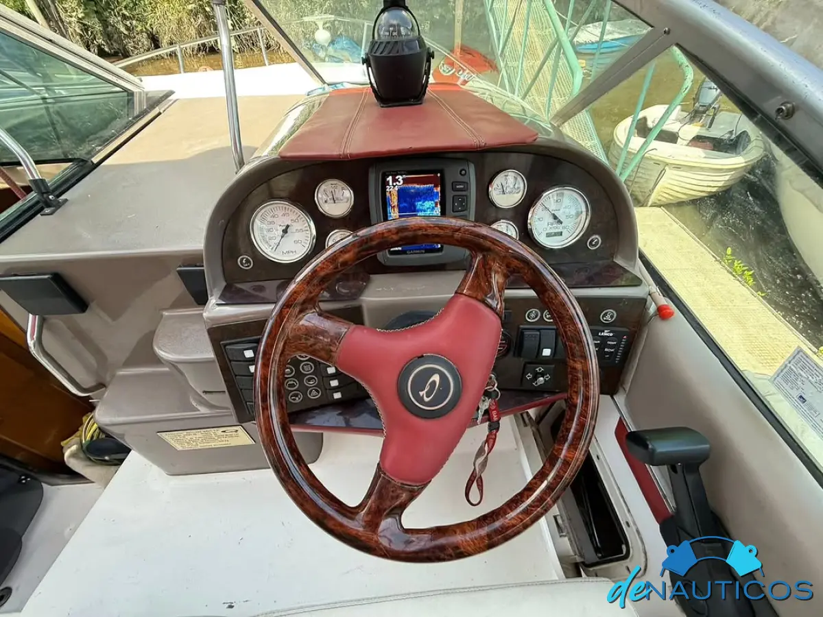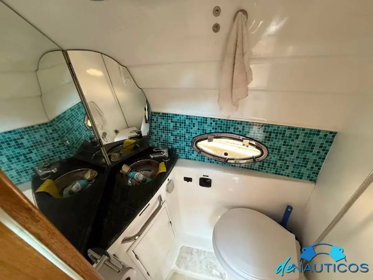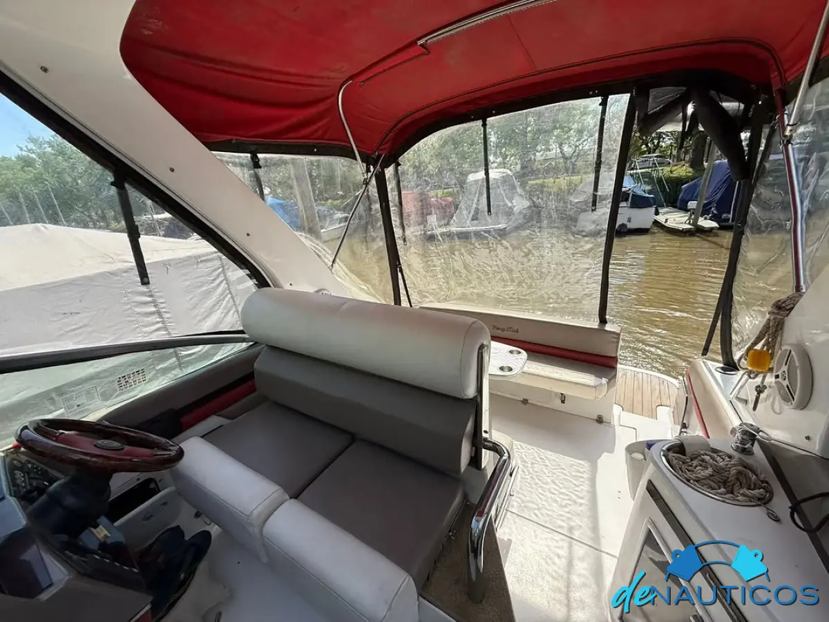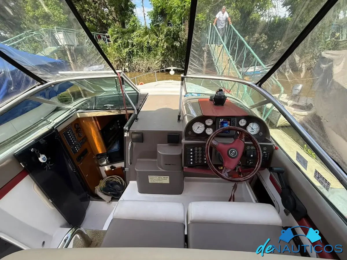 Dinette en proa convertible en cama - Baño y cocina enfrentados - Cucheta conejera doble bajo el piso del cockpit - Timonera con asiento doble - Cockpit con 2 asientos enfrentados con mesa, convertibles en solarium de popa.