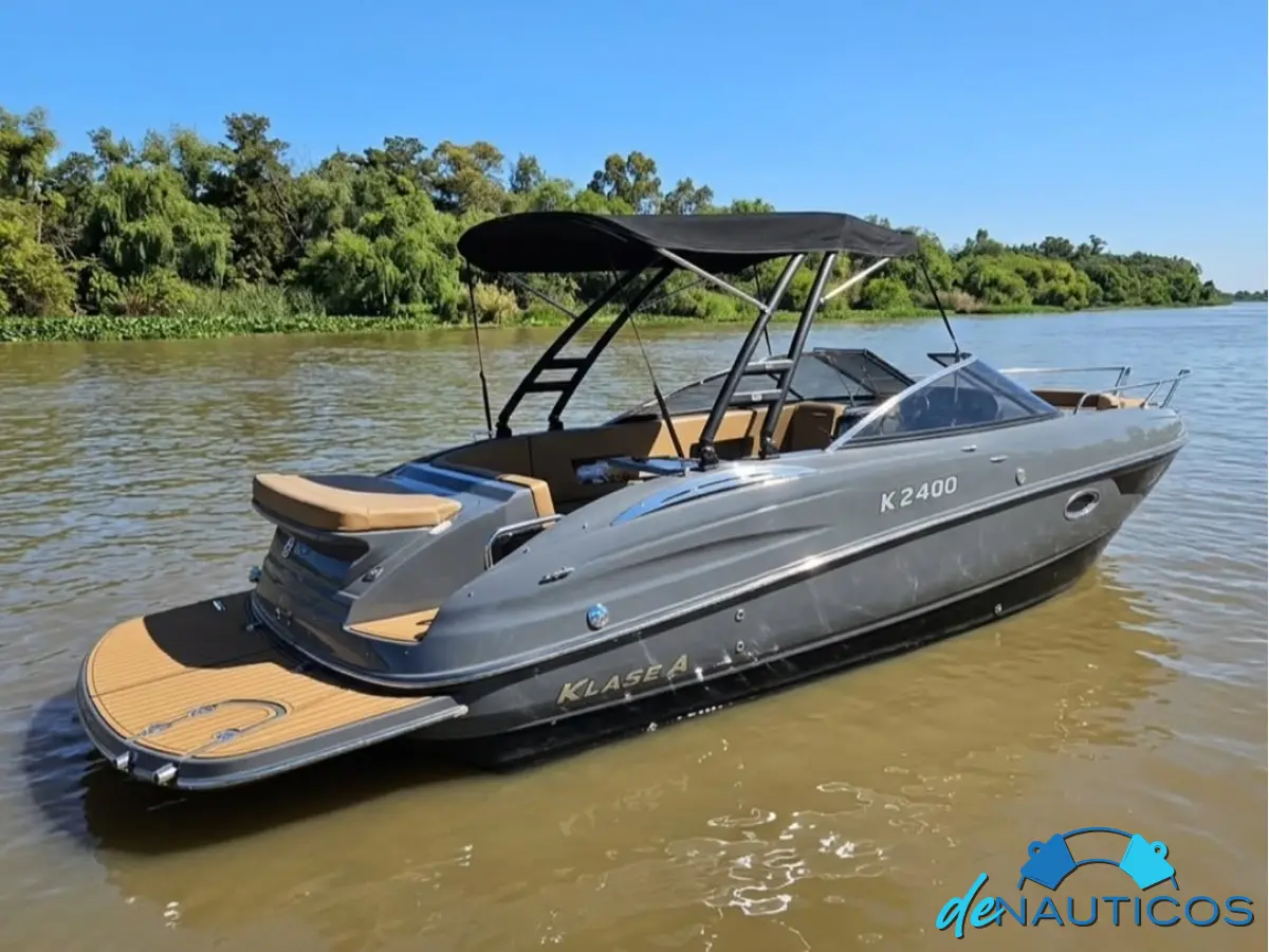 La Klase A 2400 lancha es una lancha deportiva tipo cuddy cabin con baño compartimentado, muy exitosa en el segmento de 24 pies, destacada por su diseño moderno y funcionalidad familiar, combinando confort (solárium, cockpit amplio, cuddy iluminado) con buen rendimiento (velocidad crucero de 20 nudos, máxima de 42 nudos aprox), maniobrabilidad y seguridad, ideal para disfrutar en ríos o mar, ofreciendo un excelente equilibrio entre prestaciones y comodidad a bordo para hasta 8 personas.